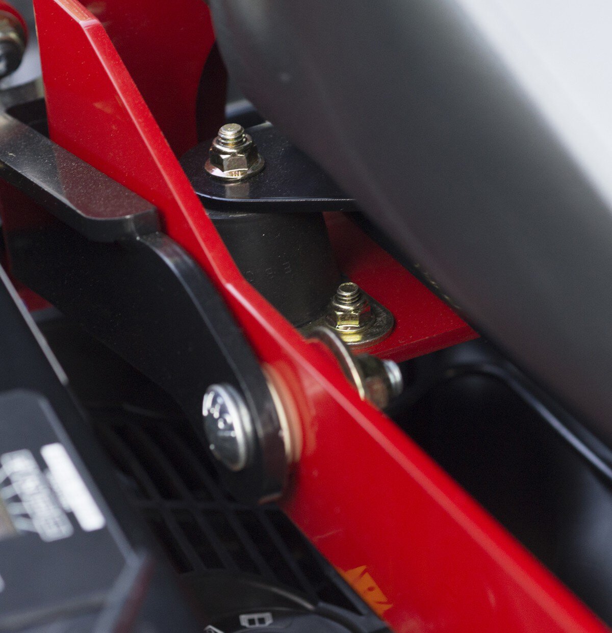 The suspended operator platform preserves the performance advantages of that have made the Lazer Z the most popular commercial zero-turn mower on the market, and it significantly reduces the negative effects of mowing rough terrain on the operator. The design is easily adjustable for operator weight and ride quality preference without tools, making it easy to achieve the desired ride quality for any operator. There’s no harsh bottoming, regardless of operator weight, and the design eases access to hydrostatic drive system components, making routine maintenance easier to perform.