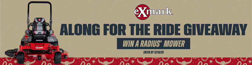 Enter December 1-15, 2025 for a chance to win a brand new 60” Exmark Radius S-Series zero-turn mower!